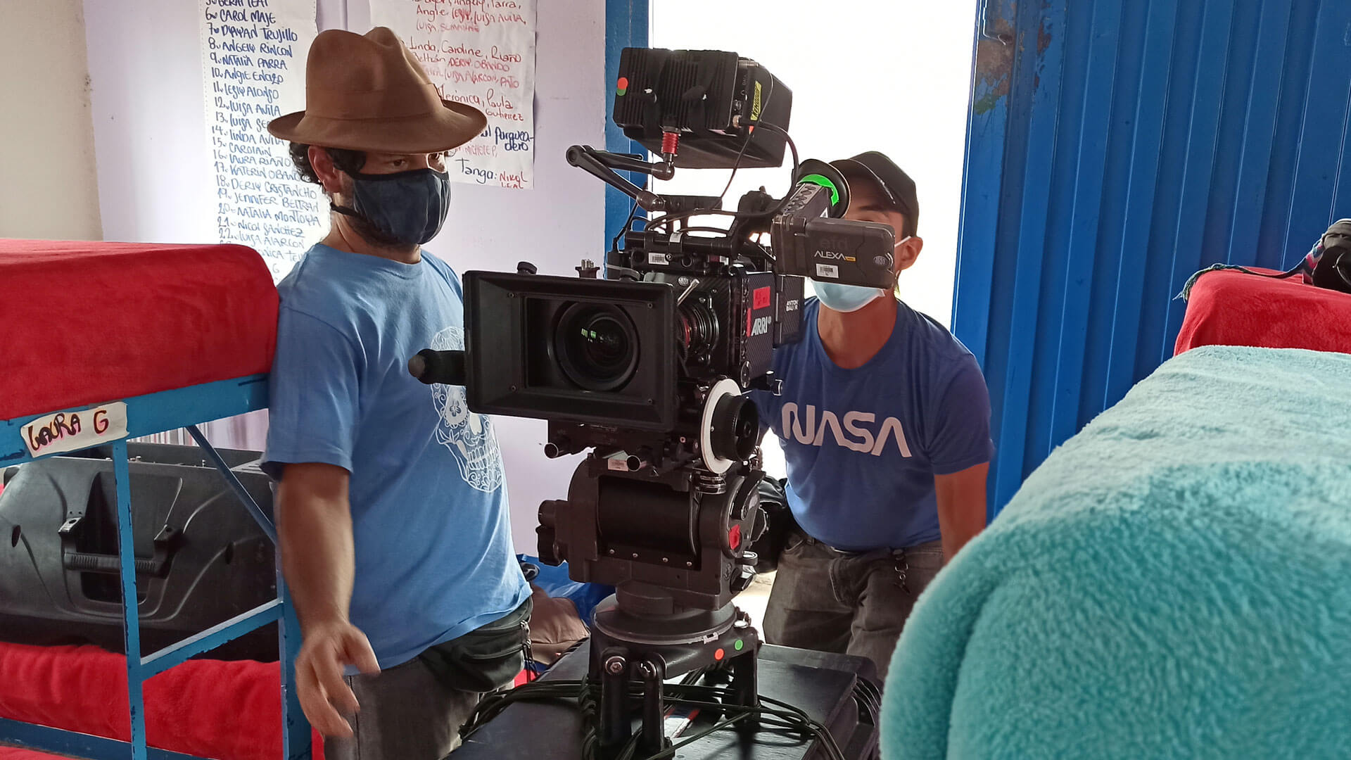 Two men work with a camera