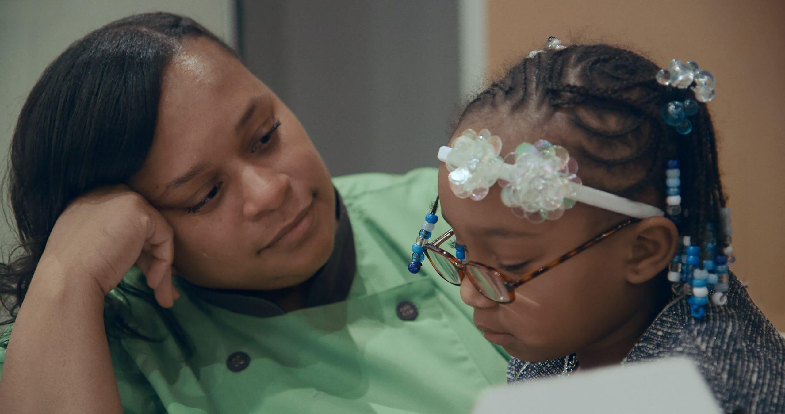 Still from Apart. Tomika is telling her daughter she’s in prison.